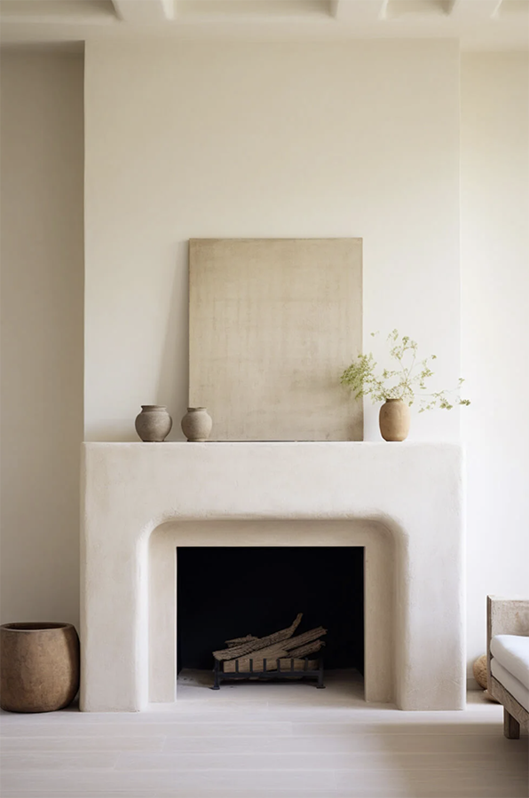 A limestone mantel creates an old world feeling that can be enhanced or modernized depending on your needs. I love that this homeowner painted the surround the same colour as the limestone to create a cohesiveness that feels calm and sophisticated.